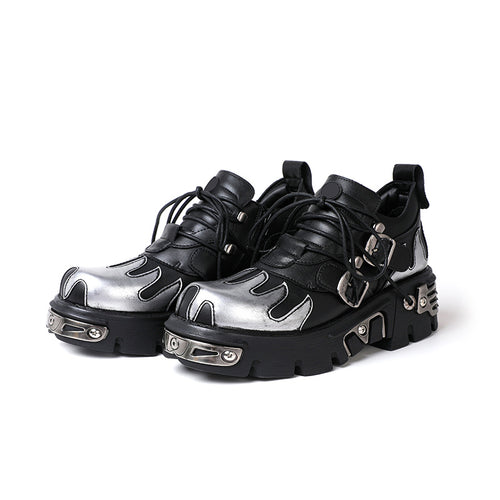High-Top Platform Leather Boots with Straps -